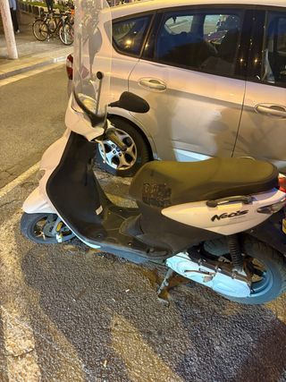 Moto Yamaha Neos de 2 tiempos. Paso la ITV el año pasado y no se ha vuelto a tocar. Tiene pocos kilómetros pero el cuenta kilómetros, el indicador de aceite y de gasolina están fundidos. La moto a veces se ahoga sola, hay que ir dándole gas.