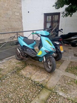Aprilia sr refrigerada por agua echa al gusto y al detalle en perfecto estado de plásticos de pintura y motor es una moto única recién pintada recién puesta a punto de motor se acepta prueba mecánica EXTRAS: Top negro con menos de 500 km Yasuni r (con papeles .homologado) Bomba de agua eléctrica de Piaggio 250cc Ojos de ángel RGB conexión blueetooth Tapa de bomba de agua personalizada Intermitentes dinámicos Amortiguador trasero de GAS Luces LED blancas MANTENIMIENTOS: aceite valbulina y junta de transmisión , muelles de embrague y embrague , filtro de aire ,guías de variador , rodillos , correa, pipa de admisión ruedas, bugia NGK +info priv