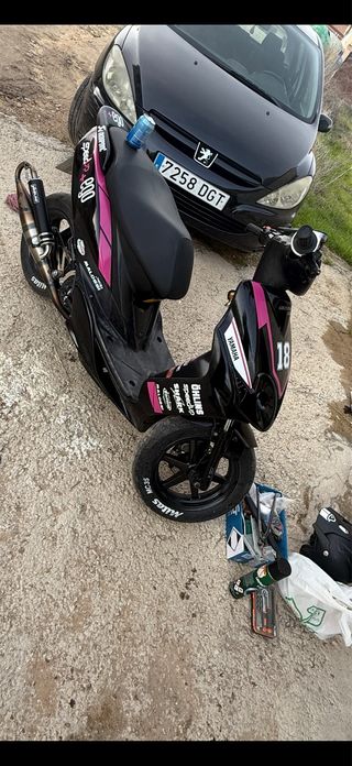 Yamaha Jog RR. - Ruedas Mitas competición. - Transmision entera malossi. - Escape C16, tiene 10 horas de uso. - Carburador 24 polini pwk campana plana. - Filtro de potencia rojo malossi. - Caja de laminas malossi. - Top rosa due 2 minarelli. - Mando de gas turbo corto. - koso blue - Tambien daria piezas de serie como faro delantero y trasero, un juego de ruedas, cilindro de casa, transmision de casa.... * Todo con facturas de mecanico. (Revisión echa hace un mes.) masss info privado.. tambien acepto cambio por moto de cross