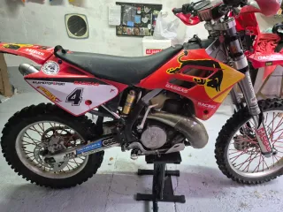 Moto Gas Gas EC 250 . Hecha a 300cc pistón y cilindro s3, embrague hecho con 1 año Recien hecho Liquido de frenos y aceite de cambio, pastillas del. Y tras. Medio uso, suspensión del.y tras, basculante, arrastre y bufanda en buenas condiciones con protector Kevlar, rueda delantera mitas y trasera michelín perfectas, escape fmf original, radiadores sobredimensionados se da otro juego, manguitos silicona, cámaras reforzadas, se entregaría juegos de plásticos, kit itv,juego de estriberas pasajero (homologada dos). Con itv hasta 2027. Para cambios 2700.