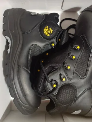 Botas de moto Panther en talla 42, completamente nuevas. - Diseño robusto y protector. - Cierre con cordones y ojales metálicos. - Suela antideslizante para mayor agarre. - Detalle de logo en amarillo en el lateral.