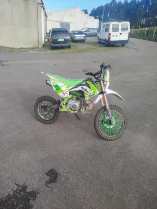 Pit bike lista para la acción en terrenos de enduro y motocross. Diseñada para ofrecer un gran rendimiento. - Pit bike nueva comprada el 25/02/25 aún en garantía. Aún está en rodaje, la probó una vez y no le gustó y se quedó parada. Arranca al toque tanto a pata como a botón. Foco con luces cortas y largas de serie. - Motor de 140cc. - Diseño deportivo en blanco y verde con estética de la de 150cc. - Todo mecánicamente está nuevo como se puede apreciar en las fotos. Para más información privado, no mareantes está nueva y no se negocia.