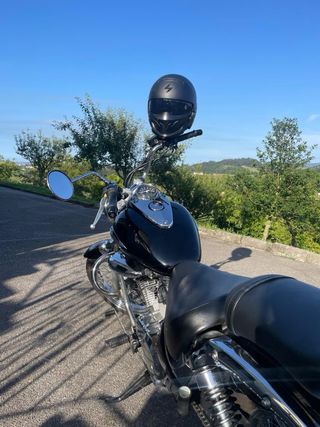 Moto estilo cruiser Suzuki Intruder con motor de 250cc. - Diseño clásico y elegante. - Asiento cómodo para el conductor. - Manillar cromado. - Rueda delantera de radios. Se vende por falta de tiempo para uso, siempre ha dormido en garaje y se entrega recién puesta apunto y ITV recién pasada.