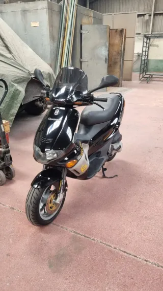 Se vende scooter Gilera Runner 49-50cc Puede entrar en la ZBE de cualquier ciudad . 31.000kms con ITV hasta 16-3-2028, las dos ruedas mitas nuevas, batería, pastillas de freno delanteras y traseras,refrigerante, bujía....rodillos de variados, muelles de embrague, correa original y amortiguador trasero nuevo,caja laminas nuevas, hace la mezcla 2t ella sola,250kms por depósito, frenos de disco, arranque automático, buen estado general, se ha ido con ella desde Bilbao hasta Soria ida y vuelta sin pega,(refrigerada por agua) Se da pieza para limitar velocidad para itv y también baúl/soporte portaobjetos,entra un casco bajo el asiento