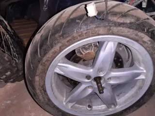 Ruedas 40€ (las dos) Horquilla completa 60€ Asientos 50€ Motor 130€ Radiador 20€ Piñas 40€ Kit de plásticos 70€ Faro 30€ Escape 70€ Todo en buen estado.