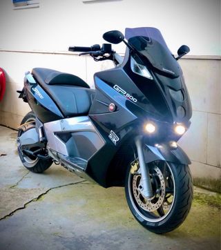 Maxi scooter Gilera GP 800 en color negro. Un vehículo potente y ágil para la ciudad y carretera. Año 2009 - Diseño deportivo y elegante. - Asiento cómodo para conductor y pasajero. - Manillar ergonómico Neumáticos ni 500 kilómetros, itv hasta 2027 Se puede probar sin problemas bien cuidada no hay que hacerle nada.