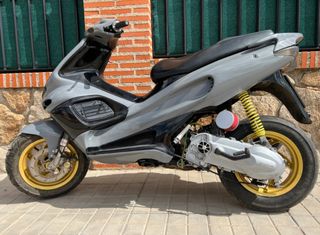 La mas barata de todo internet y te garantizo que no esta ninguna como la mia ,si no te interesa el precio no me molestes ESTA NUEVA NO NEGOCIABLE Chasis 50 montado todo de la 180 y 200 es la misma moto no se nota nada Gilera runner 180 malossi echa desde 0 -pocas unidades en este estado de 2 tiempos -Motor entero 180 malossi -carburador nuevo 300€ -tapas recien pintada a pistola gris nardo y las llantas en dorado -escape arrow de 450€ ( CON HOMOLOGACION PARA LA ITV) -bifaro -radiador y electroventilador de la 200 Muchos Mas extras Palabras Moto 2T ,moto 2 tiempos, gilera runner 125 gilera runner 180 scooter 2T