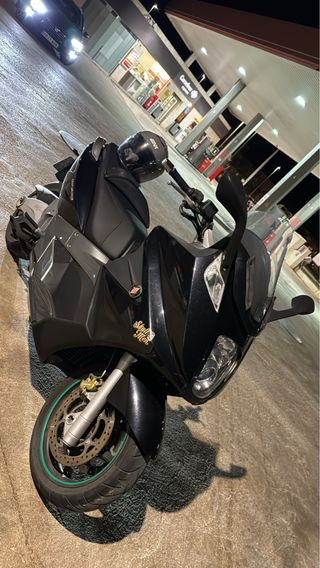 vendo maxiscooter de 839cc y 79cv,la scooter con mas potencia del mercado,es la edicion del centenario,del 2010,muy cuidada y mimada,sus revisiones cada 4000km,revision completa recien hecha con itv pasada perfectamente,kit de arrastre con 500km,las dos ruedas con 1500km pirelli diablo 3,pastillas delanteras nuevas,correa original cambiada hace 3000km con variador nuevo tambien j.costa y embrague polini,tubo homologado arrow,intermitentes led mini,cupula ahumada corta,bateria de litio 175€ puesta ayer,todas las facturas de matenimientos guardadas(masde 1800€),cuerpo mariposa nuevo,acepto cambios,moto choper custom gti r camper