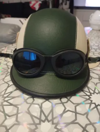Casco de estilo vintage para Vespa, con un diseño bicolor. - Combinación de colores beige y verde. - Acabado en piel sintética.