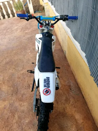 Pit bike de 125cc lista para la acción. Ideal para terrenos off-road. - Ruedas todoterreno. - Diseño deportivo. - Carburador keihin 26mm doy otro mikuni de 26mm de repuesto pero sin aguja -Perfecto estado arranca a la primera sin problemas - acelerador rápido y puños protaper (no tengo fotos) -Precio negociable -Hay que cambiar el cable del acelerador