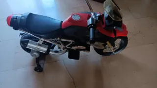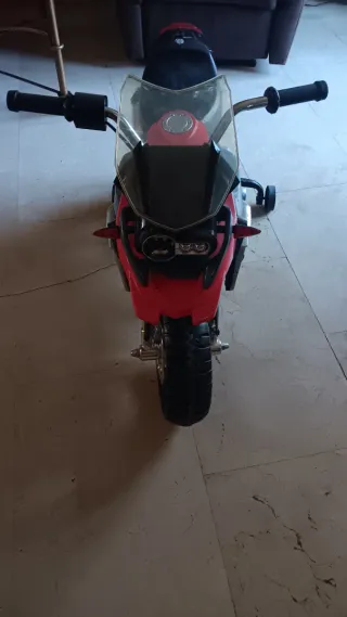Moto eléctrica para niños de color rojo. Imitación BMW. Ideal para niño entre 5 y 8 años - Diseño deportivo. - Ruedines de apoyo incluidos. - Parabrisas transparente.