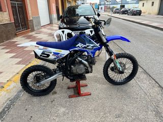 Pit bike estilo motocross con un diseño deportivo en azul y blanco.con escape cambiado !! Como se ve en las fotos!! Se vende por no uso !! La moto va perfecta!! La moto funciona y todo bien solo que hay que ponerla a punto arranca ala primera y funciona. 140cc 28 polini