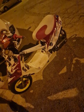 Moto tipo scooter de 50cc en buen estado. Ideal para moverse por la ciudad. - Diseño deportivo en color rojo y negro. - Transmisión automática para una conducción sencilla. Se acepta cambio por algo de mi interés , hablar sin compromiso. Tiene documentación y la itv.
