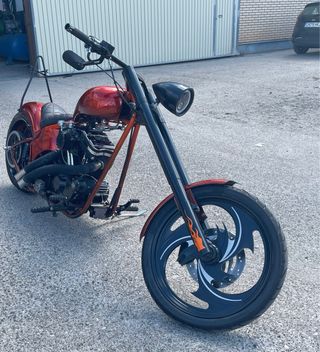 Moto custom Harley Davidson, un modelo único y llamativo. - Pintura personalizada con diseño de llamas. - Rueda delantera con diseño exclusivo. - Asiento individual. - Manillar elevado. acepto cambio x coche del mismo precio acepto cambio x ducati diavel,o ducati multiestrada