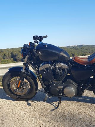 Harley Davidson Sportster Forty-Eight XL en color negro, en muy buen estado, neumaticos prácticamente nuevos, revision y puesta a punto, ver foto factura. Se entrega con respaldo, foco delantero luz Led, 2 juegos de llaves. - 17.000 km. - Escapes "COBRA", colocados hace un año. - Mantenedor de batería instalado. - Alarma. - ITV hasta Abril 2026. - Siempre en garaje.