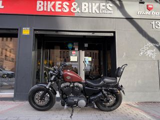 Harley Davidson sportster forty eight del 2014 con 39.600km. Muy cuidada, con todos los mantenimientos realizados en la casa oficial, último hace un mes, usada en rutas de fin de semana. Con todos los extras posibles: deposito HD 13L pintura hard candy, arranque keyless, stage 1 con escapes V&H, filtro S&S y tuner SC.Eagle, amortiguadores traseros premium black HD, suspensión delantera con muelles progressive heavy duty X, faro Led, respaldo desmontable con bandeja portabultos, dos juegos de asientos (conductor, acompañante y respaldo), de muelles de cuero marrón y sundowner negro. Se entregan colas de escape y faros originales.
