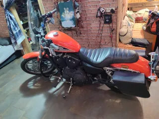 Harley Davidson Sportster 1.200cc, del año 2008 y 60.000 km,limitada en papeles,durante el 2025 se fue modificando en el concerionario Harley Davidson de Cantabria y finalmente se homologo todo en diembre: pasando la itv.Escapes con regulacion del sonido:suenan brutales,manillar cuelgamonos de 17",tijas anchas 5° de inclinación, horquillas 5 cm mas largas,amortiguadores traseros de 11",asiento de diamantes,deposito grande 16 litros y elevado, mandos avanzados,puños del manillar colección harley,bateria de litio,patacabras mas corto,cambiada la llanta trasera ,embrague reforzado,juntas de los cilindros,envío video WhatsApp