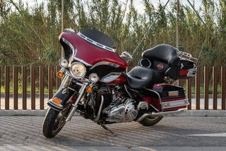 Motocicleta Harley-Davidson FLH 1 Ultra Classic Electra en color rojo y negro. - Estilo touring. - Asientos dobles. - Año 2006 - 69 cv - 1449 c.c. - 48.692 Km - Etiqueta B - Recién revisada - Neumáticos nuevos - Muchos extras - Bicolor Rojo-negro - ITV hasta 02/2027 - Seguro en vigor PRECIO 12.950.-€