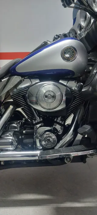 Motocicleta Harley Davidson Electra Ultra Glide Screamin Eagle del año 2009. Presenta un diseño distintivo en tonos plateados y azules. - Estilo touring. - Combinación de colores azul y plateado. - Modelo Screamin Eagle. - Diseño exclusivo en plata y azul, edición limitada con todos los cromados posibles, embrague hidráulico, sonido Harman Kardon con volumen automatico, marcha atras, asientos y puños calefactados, ABS, cruiser, 45.000kms, etc,etc.no caben todos los extras aqui. Puedo valorar moto de mi interés como parte del pago.