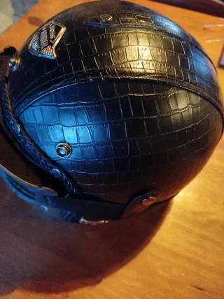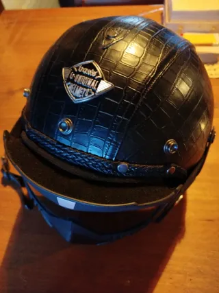 Casco Harley Davidson de estilo custom, con acabado en imitación piel de cocodrilo. - Color negro. - Diseño único. - Insignia metálica frontal.