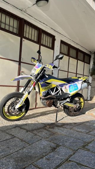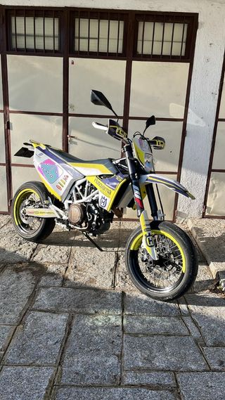 Husqvarna 701 SM Año 2019 19500 KM Toda de origen. Perfecto estado,impoluta. Se deslimito recientemente de motor y documentación. Recién cambiado: Retenes horquilla. Aceite,filtros KN. Filtro aire KN. Neumáticos. Cubre carter AXP Faro delantero Led. Batería Litio. 2 juegos de llaves. ITV hasta junio del 2027