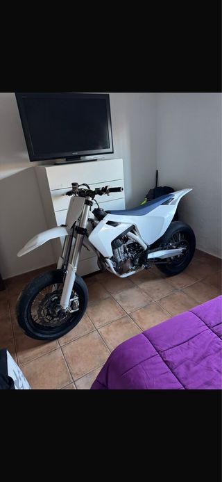 Minimoto Husqvarna 85cc estilo supermotard. - Moto de cross adaptada a supermotard. - Ruedas de carretera. - Manillar de protección. Esta bien de todo, lista para darle gas. Incluye dos juegos de plasticos y dos juegos de ruedas usadas.