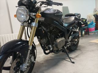 Moto Hyosung Comet 125 motor cambiado 250, estilo naked. El cambio se hizo hace más de 10 años, pasa itv sin problemas. Los componentes mecánicos de la 125 y la 250 son los mismos por los que no existe riesgo. Itv hasta marzo de 2017. La moto necesita cariño, lleva casi 1 año sin usarse apenas. Arranca perfectamente y se le hizo revisión profunda con limpieza de deposito , carburadores, manguitos, y aceites justo antes de itv. Regalo escape tipo akrapovic de facil sustitucion FALLOS: Desde que se cambió el motor la 4 velocidad no engrana. (Yo la he usado más de 10 años asi) Hay que sustituir la manera de freno delantera y purga
