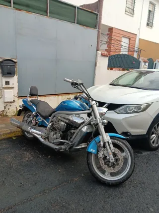 6123km. 09/2025 matriculación HABRIA QUE HACER PUESTA A PUNTO..Cambio aceite,frenos,bateria,itv. DOCUMENTACIÓN AL DIA,IMPUESTOS ETC Moto Hyosung Agila de 650cc. - Color azul. - Diseño tipo custom. - Asiento doble. - Cromados en motor y escape.