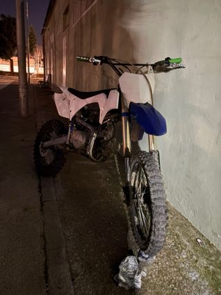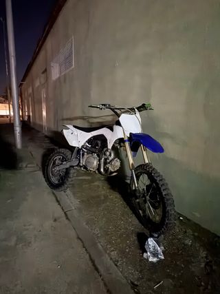 Moto de cross replica YZ 140 en colores azul y blanco. Ideal para terrenos off-road. - Motor de 140cc. - Transmisión manual 4 marchas enchega ha la primera talla xxl todo los mantenimientos al día cambio de bujía de aceite reglaje de válvulas recién echo suspensión trasera nueva encendido nuevo para que corra mas llanta trasera i delantera nueva neumaticos nuevos plato trasero nuevo todo al dia mejor ver i probar ruedas cambiadas para que sea mas alta