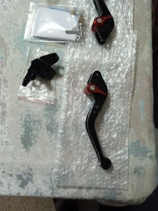 Juego de palancas de freno y embrague para motocicleta. Palancas de freno y embrague - Color negro. - Fabricadas en aluminio. - Diseño ajustable. Palancas de freno y embrague