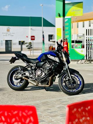 Moto Yamaha MT-07 del año 2019. Un modelo deportivo y ágil. - Estilo naked. - Transmisión manual. - Revisiones al día Aceite cambiado hace 200 kms y líquido de frenos - Neumáticos con 700 Kms - Portamatrículas corto, espejos, intermitentes leds, luz blanca - Escape Mivv Speed La moto está cuidada al detalle, para no tener que preocuparse de nada ni hacerle nada hasta la próxima revisión Cambio de nombre a cargo del comprador. El precio siempre es algo negociable. No mareantes. No me urgen venderla, la vendo porque he sido padre y no tengo tiempo que cogerla. 33.000 KMS ITV HASTA 2027 Conservo todas sus piezas originales