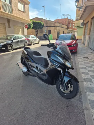 Scooter Kawasaki J300 en color negro. del 2015 El scooter va muy bien tiene la revisión reciente hecha para venderlo y la correa se le cambió hace 500 kilómetros se le ha cambiado aceite, filtros, aceite de transmisión y pastillas delanteras tiene casi 70000 kilómetros pero siempre se le ha cuidado y hecho las revisiones cada 5000 no ha hecho ciudad solo por carretera comarcal y ha dormido siempre en garaje privado lo vendo con pantalla alta, caientapuños Oxford, manta para el frío y baúl trasero. solo uso particular para ir al trabajo