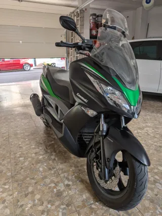 Moto tipo scooter Kawasaki J300 en muy buen estado. Diseño deportivo en negro y verde, moto del año 2014 con casi 35000km, único propietario, siempre en garage, las revisiones siempre en taller Kawasaki demostrable a través de página oficial Kawasaki. - Baúl trasero incluido de gran capacidad - Frenos ABS. - Itv hasta septiembre 2026 - *Potencia:* 28 CV (20,3 kW) a 7.750 rpm - *Cilindrada:* 299 cc - *Tipo de motor:* Monocilíndrico, 4 tiempos, refrigerado por agua - *Transmisión:* Automática CVT - *Peso en orden de marcha:* 191 kg aprox. -SE REGALA MANTA TERMINA TUCANO R-169 PARA ESTE MODELO Y NO SE REBAJA EL PRECIO