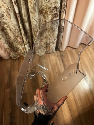 Cúpula original para Kawasaki Ninja 650 2025. Esta sin estrenar porque le puse la ahumada a la moto - Fabricada en policarbonato transparente. - Diseño aerodinámico. - Logo de Kawasaki grabado. -Sirve para otros años del mismo modelo