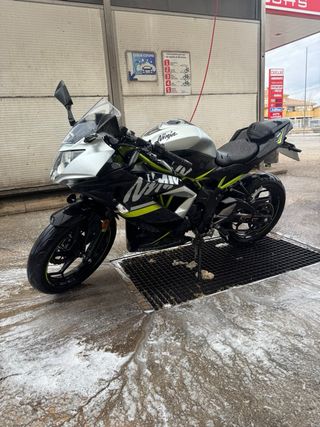Moto Kawasaki Ninja 400 2018. - Moto apta para carnet A2. - Linea completa Akrapovic homologada - Cola final SC replica no homologada - Colin de pasajero verde - Alerones esteticos - Retrovisores rizoma replica - Cupula ahumada y transparente - Porta matriculas corto - 26.000km - Itv pasada a finales del 2025 con el escape Akrapovic - Ruedas al 80% Se vende por falta de uso y cambio de cilindrada. Perfecta para aprender con el A2. Negociable.