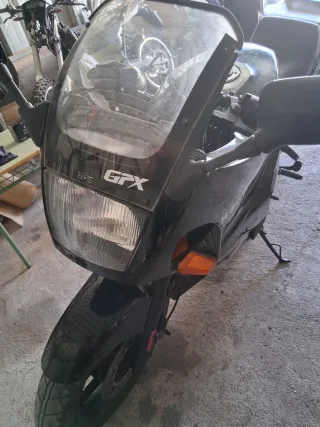 Motocicleta deportiva Kawasaki GPX600 R Ninja en color negro. Clásica. - Diseño deportivo. Revisada y en marcha sólo falta pasar ITV no la a pasado nunca 26 años parada. negociable 26000km filtros, pastillas, refrigerante, aceite, etc. Todo nuevo. Urge, o en 2 semanas se desguaza y se vende a piezas. Escucho ofertas. Documentada.