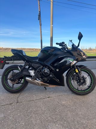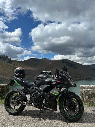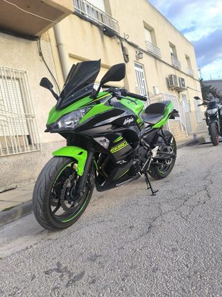 Moto Kawasaki Ninja 650 del año 2021, ideal para el carnet A2. Diseño deportivo y ágil. - Color verde y negro. - Matriculada en 2021. - Recién pasada itv sin problema. - 70cv, con rueda diablo rosso nuevas. - Mantenimiento comoleto recién pasado. - Se entrega tuvo escape Mivv ( moto gp2 ) - Se entregan maletas y soporte para viajes. - Duerme en garaje siempre. - Estado impoluto.
