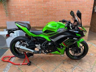 Moto deportiva Kawasaki Ninja 650, versión KRT (kawasaki racing team) limitada para el carnet A2. - Año 2022 - 2 llaves. - Siempre en garaje. - Garantía oficial hasta Marzo. - 29.000km - Muy mimada, sin caídas ni roces. - Mantenimientos al dia en la casa. - Neumático trasero recién cambiado. - Dos porta matrículas Puig homologado corto mas original. - Colin deportivo + Asiento. - Cadena reforzada. - Se admite prueba mecánica. Mejor venir y verla en persona.