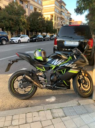 🏍️ KAWASAKI NINJA 400 - A2 🚀 Se vende Kawasaki Ninja 400, ideal para el A2, muy ligera y divertida. ⚙️ Especificaciones técnicas: - 35244 kilómetros - ITV en vigor hasta el 30/05/2026 - ABS - Escape Leo Vince homologado (se entrega el de serie también) - Luces led delanteras y traseras originales - Potencia: 45cv (33,1 Kw) 📑 Detalles a tener en cuenta: - Neumáticos delanteros y traseros Bridgestone nuevos - Aceite y filtros recién cambiados en agosto, desde entonces se le han hecho 1000kms. - Kit de arrastre nuevo cambiado en julio ✅ La moto está lista y preparada para hacerla kilómetros
