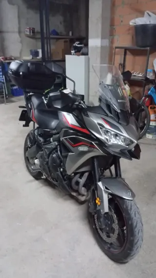Moto Kawasaki Versys 650 del año 2022. Moto muy versátil y cómoda para cualquier tipo de uso, desde uso cotidiano a rutas por carretera y viajes. La vendo porque no la uso. La compré hace unos meses y, al cambiar de trabajo, me he quedado sin tiempo para usarla. Apenas le he hecho 2000 km. Revisión y aceite al día. Garantía de concesionario hasta septiembre. -650 cc/67cv -16000km -ABS -Maleta original Kawasaki -Suspensión Showa (regulable) -Pantalla delantera regulable -3 modos de conducción Moto muy fiable y en perfecto estado, ni un rasguño. Está nueva. - Color: Negro y gris. - Transmisión: Manual.