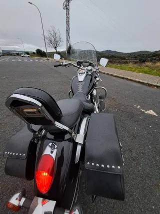 Kawasaki Vulcan VN900 Classic 2006 con 46.000 km en perfectas condiciones. Ruedas con solo 6000km, pastillas nuevas, filtro de aire nuevo, bateria nueva, alternador nuevo y regulador. Se entrega con defensas laterales, estriberas de serie, respaldo con portabultos, maletas laterales de cuero semirrigidas, cofre trasero de cuero.