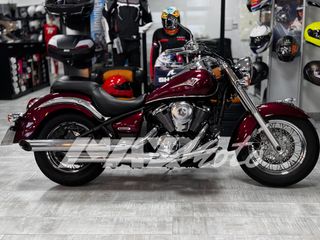 Motocicleta Kawasaki VN900 Classic en color burdeos. Un estilo clásico y elegante. - Asiento doble. - Respaldo para el pasajero. - Escape cromado. -Alforjas de regalo. Válida para el A2. ITV hasta 2027.
