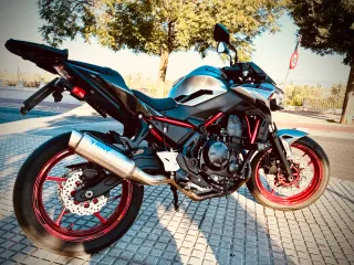 Vendo Kawasaki Z650 para A2, por cambio de cilindrada. Moto en excelente estado, siempre en garaje y con sus mantenimiento al día demostrables. Nunca en circuito. • Año 2020 • Kilometraje: 20.000km • ITV: en vigor hasta marzo 2026 • Escape: Scorpion (se entrega también el original) • Accesorios: portamatrículas Puig, topes anticaída Puig, ruedas pirelli Diablo Rosso con menos de 1.000 km.