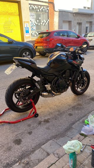 Kawasaki z650 del 2024 10.946km itv en vigor cambio de aceite y filtro hecho recientemente ruedas mitas al 100% colin deportivo, se entrega con el asiento de serie escape ixil homologado en ficha manetas anticaida cupula negra la moto se vende por falta de uso, está totalmente nueva