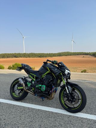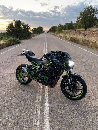 Kawasaki Z900 FULL (125cv) del año 2019. - KM: 15.000 km - Año: 2019 Extras: Escape MIVV GP Pro Carbono, linea de escape completa, diabolos, topes anticaida puig R19 y portamatriculas corto puig. Ademas manetas en color verde no instaladas. Tengo todo lo de casa. Versión no limitable para A2. Muy cuidada, siempre en garaje, ITV recién pasada, próxima en 2027. Cambios de filtros y aceite al día revisiones al día, periodico engrase de cadena. Dispongo de mas fotos y video que puedo pasar en privado. PRECIO NEGOCIABLE Venta por cambio de montura.