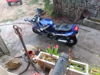 Moto deportiva Kawasaki ZZR600 en color azul - Carenado deportivo. - Parabrisas azul. - Ruedas de carretera. - necesita pequeña puesta apunto. - Arranca y funciona. - cambiaría por supermotard