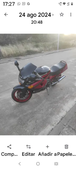 Kawasaki ZZR 600 – Año 1996 ITV hasta finales 2027 41.500 km reales Mantenimiento recién hecho: – Neumáticos nuevos – Aceite y filtros – Pastillas y líquido de frenos - Recién carburada - Tratamiento cerámico Motor muy fino, sin ruidos ni consumos anómalos ni pérdidas de ningún tipo. Conducción y comportamiento muy estable, mecánica muy cuidada. Extras: – Cúpula deportiva – Portamaletas trasero Moto lista para usar, no hay que invertir nada. 👉 Precio: 1.550 €