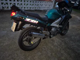 Se trata del restiling de la mítica ZZR 600 de los 90. Esta unidad se matriculó en 1995 y se ha restaurado por completo. Conserva todas las tapas de origen a excepción de la cúpula, instalada en Diciembre del 25 y el escape, de la marca Thunder. Se trata de una unidad con unos colores muy poco vistos, muy pocas en toda España, lo que le da un toque más de exclusividad. Su motor de 4 cilindros de 105 CV es de una nobleza sobresaliente, su sonido gira cabezas, aunque ya lo hace aparcada. Ideal para viajes largos, quedadas y rutas de curvas. El motivo de la venta es la zona de bajas emisiones, que me limita su uso. Valor al alza.