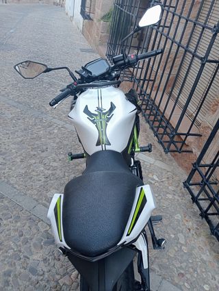 Moto Kawasaki ER6N en color blanco, limitada para A2. - Diseño deportivo y ágil. - Ideal para rutas urbanas y de carretera. -Moto muy cuidada, mantenimientos al día. -Limitada para A2 (DOY KIT DE DESLIMITACION) -Lleva escale Leo Vince, porta matrículas deportivo, intermitentes leds (DOY TODO LO DE CASA) -Acepto cambio por moto de enduro. -Preguntar sin compromiso.