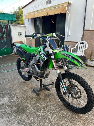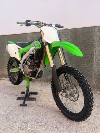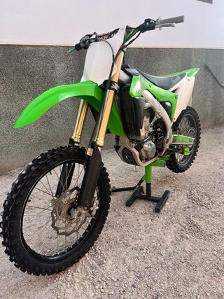 Moto de cross Kawasaki KXF 450. - Color verde y blanco. - Ruedas al 90% kit de pegatinas nuevo se da con la moto